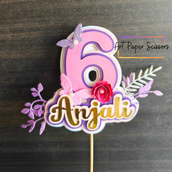 Butterfly Theme 6th Birthday Cake Topper with Name