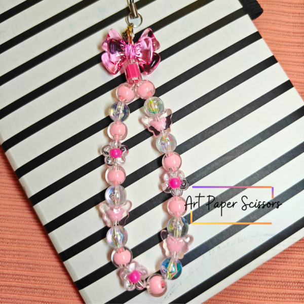 Sweet Pink Bow Chain Charm – Pastel Cute Phone Strap