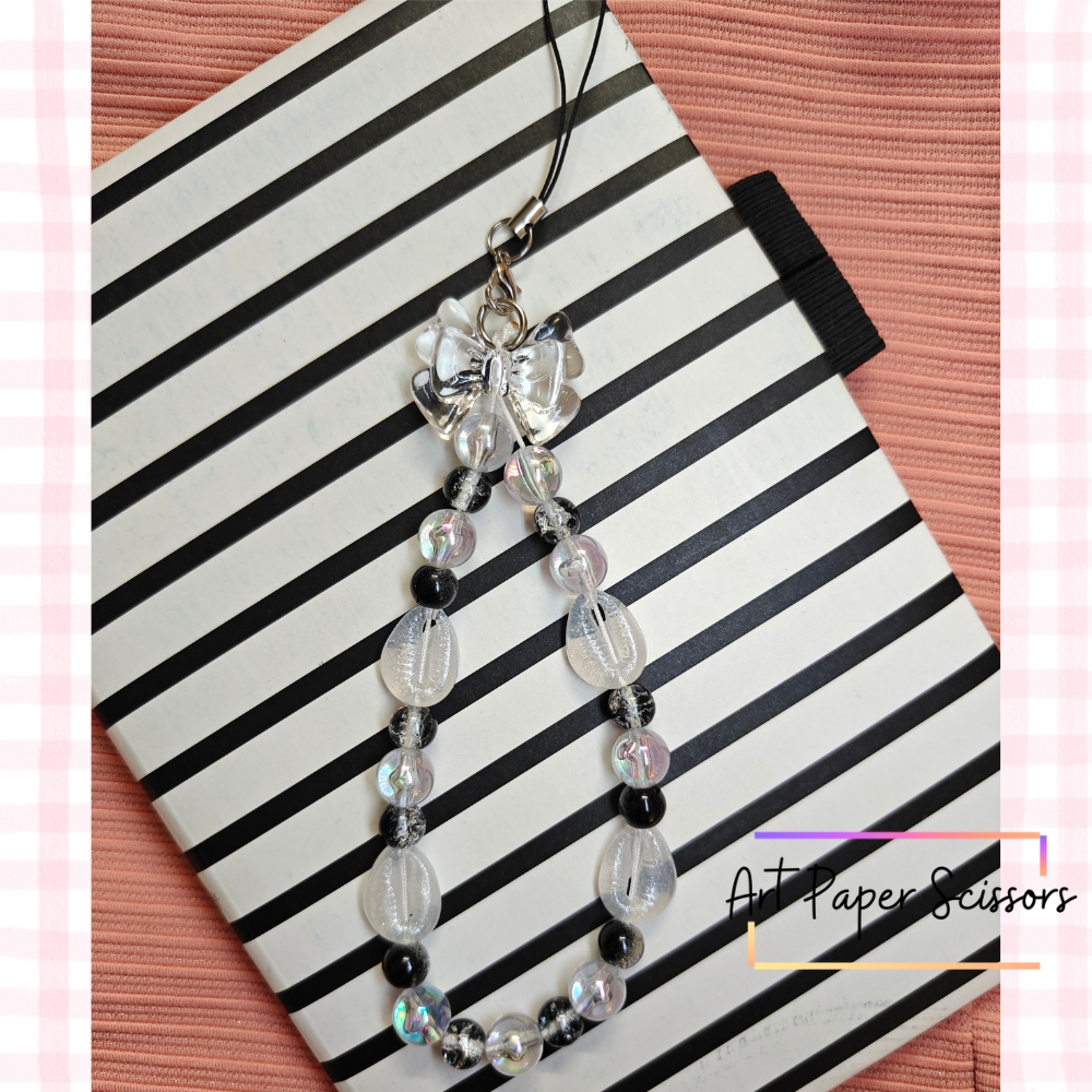 Black & Clear Bead Chain Charm – Cute Phone Strap