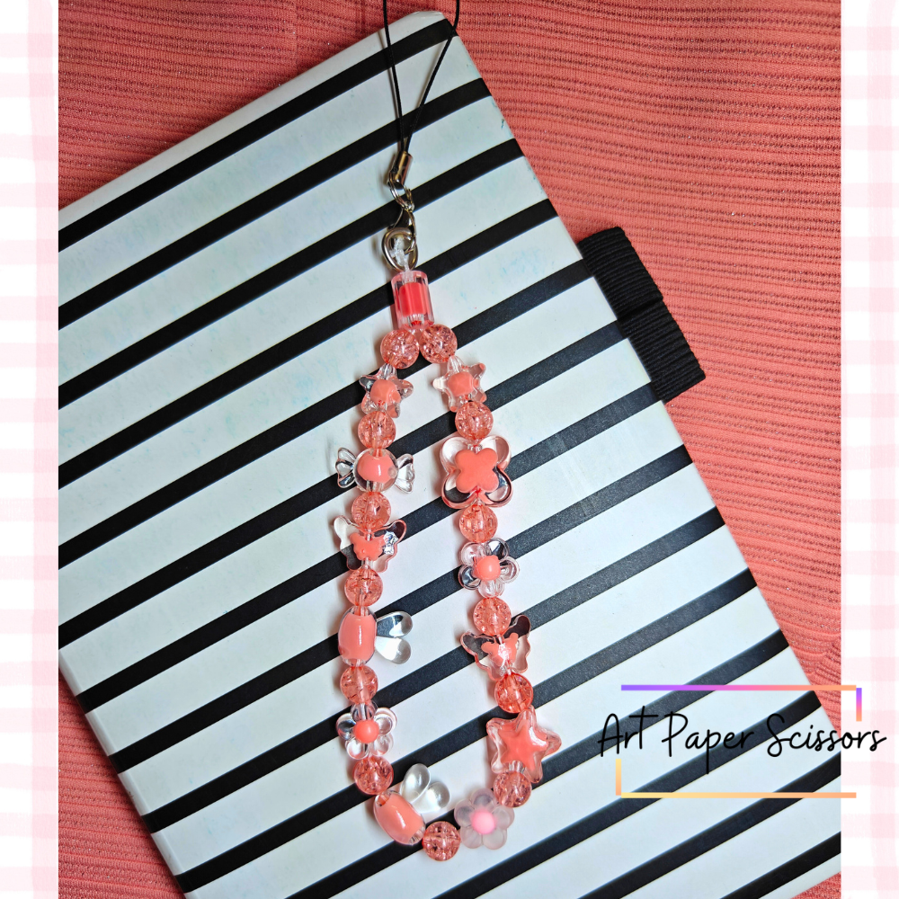 Coral Peach Star Flower Chain Charm – Aesthetic Phone Strap