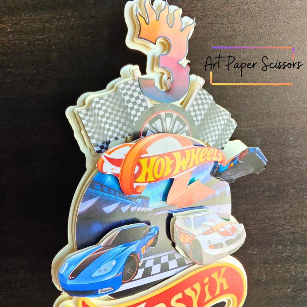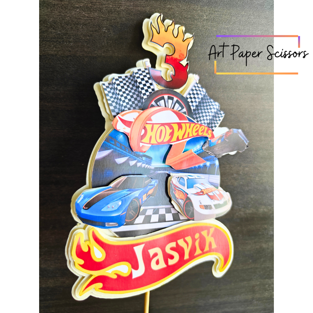 Hot Wheels Theme Cake Topper- Custom Name And Age