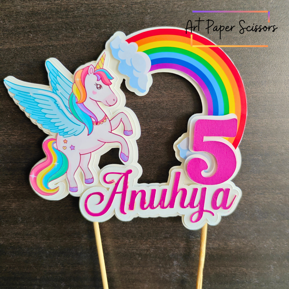 Unicorn Rainbow Cake Topper for Girls Birthday